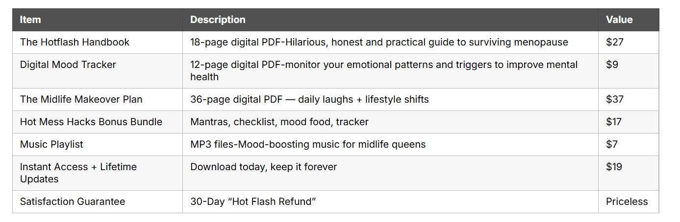 Is it only for hot flashes? — No. We cover mood swings, brain fog, laughter, chaos.